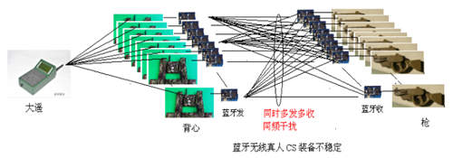 藍(lán)牙方案槍不采用與背心和大遙相同模塊,大遙的數(shù)據(jù)不能直接發(fā)送給槍,槍收到的命令是由背心通過藍(lán)牙轉(zhuǎn)發(fā)的(包括戰(zhàn)斗開始,被打中,打中敵人。。。),背心同時轉(zhuǎn)發(fā)給槍時會產(chǎn)生相互干擾,會導(dǎo)致很多槍啟動不了;另外槍和背心不能同時接收被擊中者反饋過來的戰(zhàn)績,就不會有相互糾錯能力,戰(zhàn)績不準(zhǔn)確。